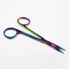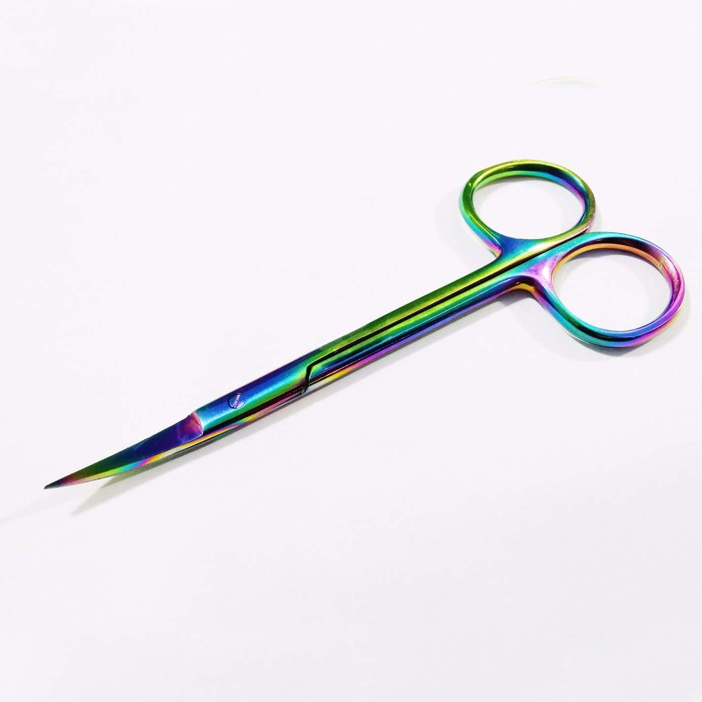 Titanium serrated curved 4.5 rainbow color iris scissor made of stainless steel. available in different sizes. 4.4.5, 5, 5.5, 6.